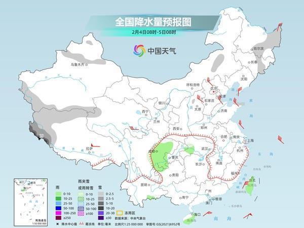 rr r rrr随着暖湿气流逐渐减弱,冷空气不断南下,今天我国雨雪范围进一步缩减,南方多地有望放晴。中央气象台预计,新疆西部和沿天山地区、西藏西部和北部、内蒙古中部、黑龙江东部、吉林东部、山东半岛北部等地部分地区有小雪或雨夹雪,其中,西藏西部部分地区有中到大雪,局地暴雪。